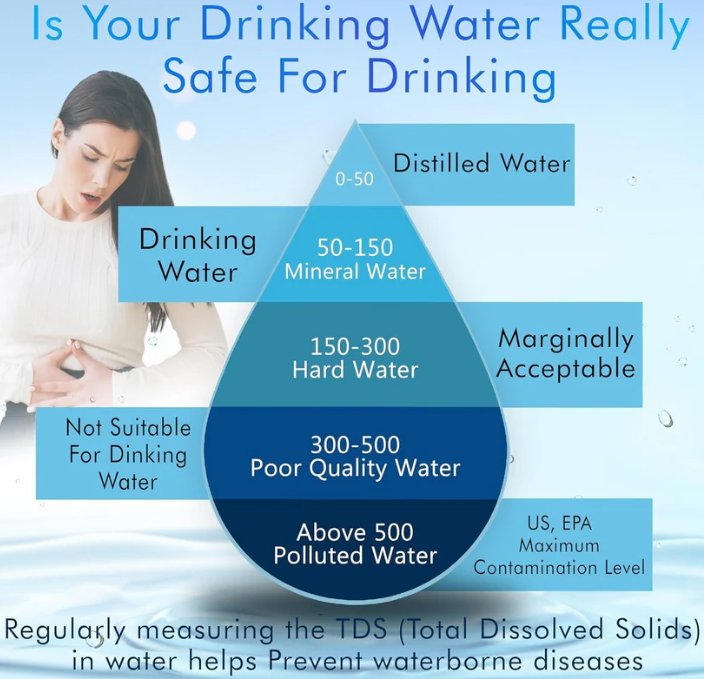 - High TDS paani me chemicals, salts aur impurities ho sakte hain jo long-term health ko damage karte hain.